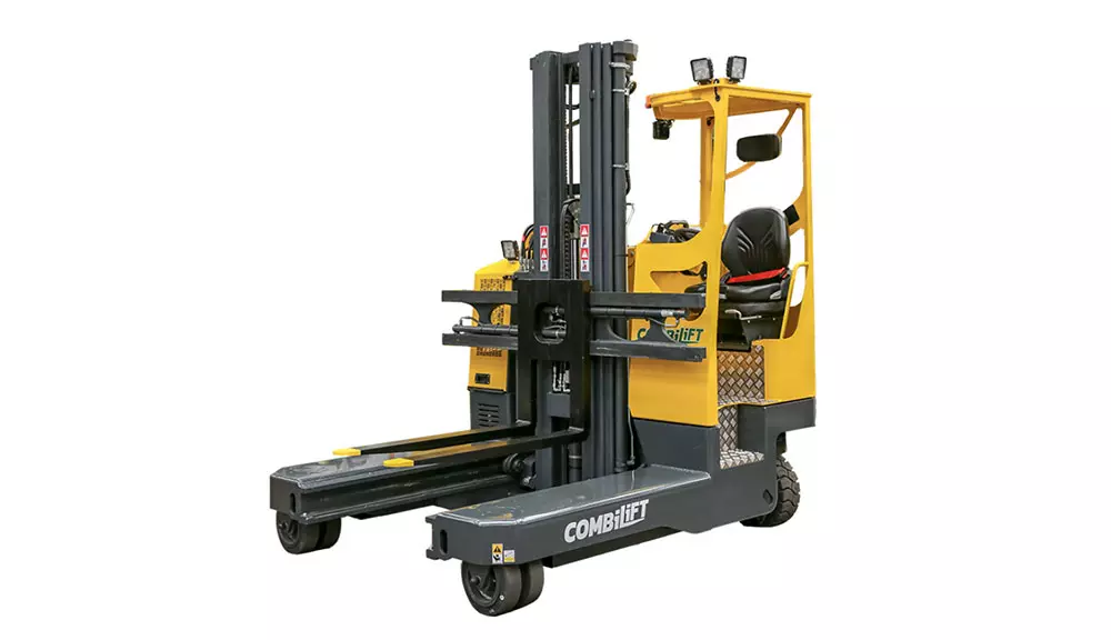 The agile Combilift COMBI-MR4 multi-directional forklift, with Dynamic 360° Steering System is designed for the safe, space saving and productive handling of long and bulky loads. Suitable for handling: Guided Aisles, Long Loads, Narrow Aisles and Palletized Goods.