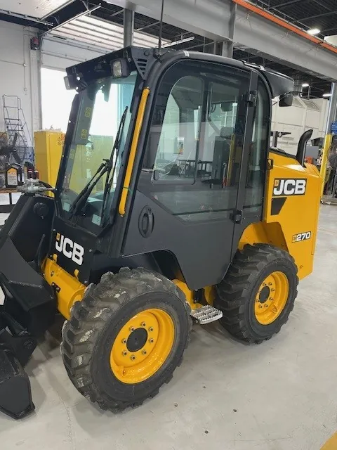 270 NA SKID STEER, CAB, WHEELED, HEAT & AC, JCB CONTROLS WITH 7 WAY JOYSTICK, HIGH FLOW HYDRAULICS, 2 SPEED, POWERED QUICK HITCH, REVERSING FAN, VINYL AIR SUSPENSION SEAT, LP REAR VIEW CAMERA, PARALLEL LIFT